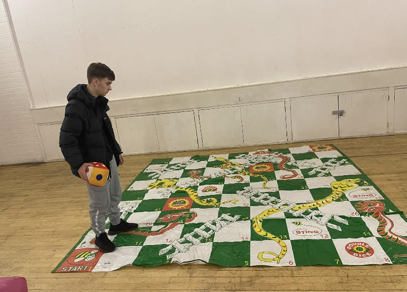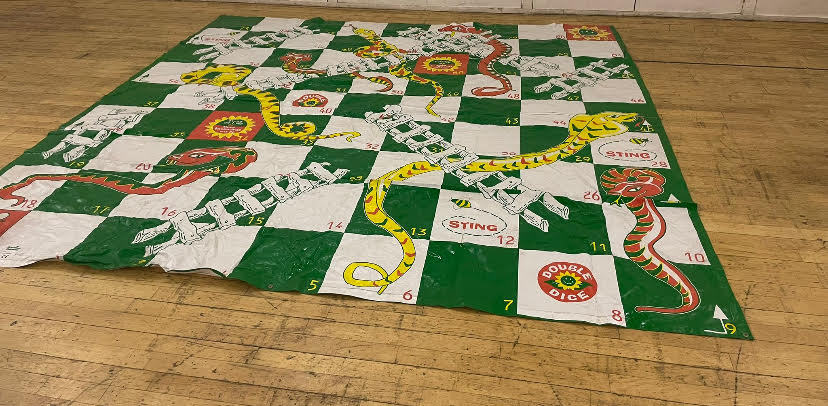 This is a large garden game version of the traditional snakes and ladders game.